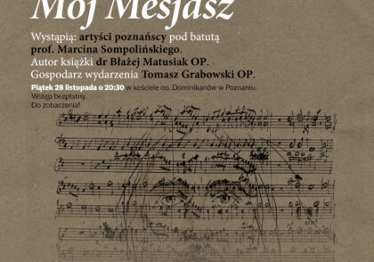 W programie usłyszymy fragmenty oratorium „Mesjasz” G.F. Haendla w wykonaniu poznańskich artystów pod batutą prof. Marcina Sompolińskiego. Głębię treści tego muzycznego dzieła przybliży nam autor książki pt.: „Mój Mesjasz. Przewodnik po oratorium G.F, Haendla”, muzykolog dr Błażej Matusiak OP.